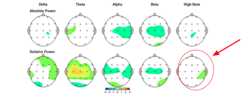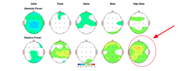This is a qEEG of a young hockey player that struggled with anxiety. As you can see in the before, his high beta was overactive, which caused his anxiety.